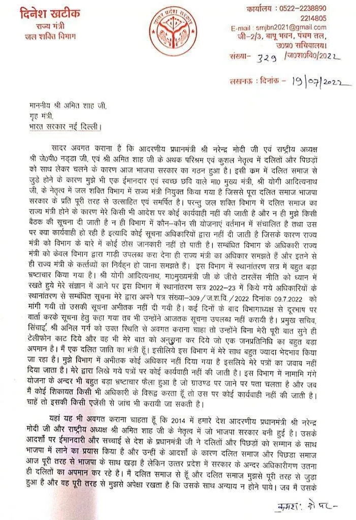 यूपी में भी राजनीतिक संग्राम, जलशक्ति मंत्री दिनेश खटीक ने दे दिया इस्तीफा